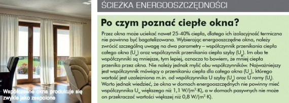 Współcześnie produkowane okna i drzwi otwierają przed inwestorem wiele możliwości, zarówno dotyczących odpowiedniego ich doboru pod względem komfortu i estetyki, jak i zapewnienia minimalnych strat ciepła, które – jak wiadomo – przekładają się na niskie koszty eksploatacji domu. Wybierając okna do domu energooszczędnego, należy się kierować nie tylko ich wyglądem i ceną, ale przede wszystkim parametrami, które mówią o tym, jak dużo ciepła będzie przez nie uciekało i w jakim stopniu są w stanie wpłynąć na poprawę termoizolacyjności przegrody.