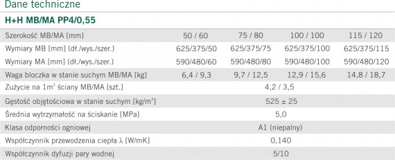 H+H MB/MA to kompletny system wznoszenia ścianek działowych w skład, którego wchodzą bloczki H+H MB (bloczki w tolerancji wymiarowej TLMB), bloczki H+H MA (bloczki w tolerancji wymiarowej TLMA) oraz niezbrojone H+H MN (nadproża do ścian nienośnych). Bloczki H+H MB/MA i nadproże H+H MN wykonane są z betonu komórkowego odmiany PP4/0,55.