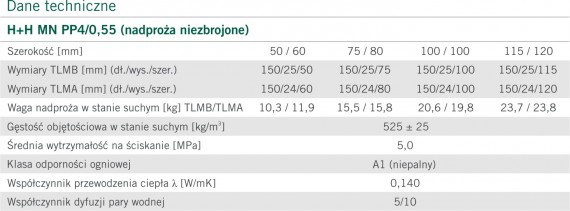 · możliwość wykonania nadproży z zastosowaniem H+H MN,