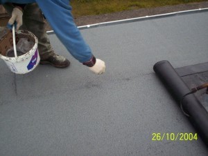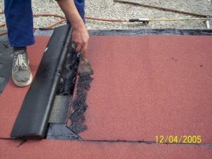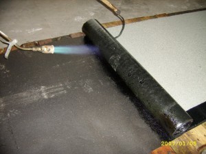 Zasadnicza operacja zgrzewania polega na rozgrzaniu palnikiem podłoża oraz spodniej warstwy papy aż do momentu zauważalnego wypływu asfaltu z jednoczesnym powolnym i równomiernym rozwijaniem rolki(zdj. nr 7).