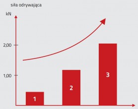 BOLIX KWM to nowatorskie rozwiązanie, zwiększające nawet kilkakrotnie odporność ocieplenia na odrywanie przez wiatr (badanie wg ETAG 004, schemat 2b), w stosunku do mocowania standardowego (przy tej samej liczbie łączników), .