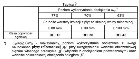 Klasyfikacja ogniowa w zakresie odporności ogniowej przekryć dachowych z izolacją termiczną z płyt styropianowych lub ze skalnej wełny mineralnej podana w tabeli nr 1 i 2 zachowuje ważność pod warunkiem, że w rozwiązaniach warstwowych przekryć dachowych z częścią nośną z płyty żelbetonowe nie zostaną wykonane żadne zmiany.
