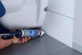 Dzięki Aplikatorowi 360® w małych pomieszczeniach, gdy muszla klozetowa jest zamontowana tuż przy jednej ze ścian - istnieje możliwość aplikacji silikonu w łatwy i wygodny sposób.
