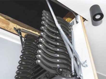 Schody nożycowe składają się w harmonijkę, a po rozłożeniu tworzą stateczną drabinę. Wykonane są ze stali. Najpopularniejsze są modele aluminiowe – solidne, odporne na korozję i bardzo lekkie. Schody nożycowe zajmują w stropie mniej miejsca niż segmentowe, ale pamiętajmy, że mały otwór utrudnia wniesienie na strych przedmiotów sporych rozmiarów. Natomiast bez problemu można je dopasować do wysokości pomieszczenia – wystarczy odkręcić lub przykręcić stopień. Można je montować w pomieszczeniach o wysokości do 330 cm, maksymalne obciążenie wynosi 200 kg.