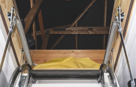 Po złożeniu schodów strychowych otwór w stropie zostaje zamknięty przez klapę, która jest do nich od spodu przymocowana. Zazwyczaj wykonana jest z drewna lub płyt drewnopochodnych. Aby zamaskować klapę, wystarczy pomalować ją na taki sam kolor jak sufit, a naokoło zamontować ozdobne listwy wykończeniowe. Zamknięta klapa nie rzuca się w oczy, widać ją dopiero po bliższym przyjrzeniu. Pamiętajmy, że schody z nieocieplaną klapą montujemy tylko między pomieszczeniami ogrzewanymi lub ocieplonymi. Mogą zatem prowadzić na strych, który ma ocieplenie ułożone w dachu lub na dachu, a nie na stropie. Natomiast ocieplone klapy stosowane są, gdy poddasze ma izolację termiczną ułożoną na stropie lub między jego elementami konstrukcyjnymi (drewniany strop belkowy).