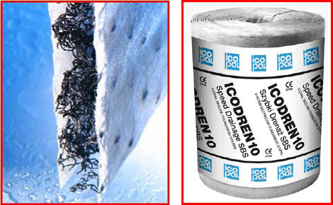 Icodren 10 Szybki Drenaż SBS - mata drenarska składająca się z przestrzennej struktury wykonanej ze splecionych włókien poliamidowych oklejonych obustronnie włókniną poliestrową. Mata ta posiada dwukrotnie bardziej korzystny współczynnik filtracji w stosunku do innych dostępnych na rynku wyrobów o podobnym przeznaczeniu. Jest całkowicie odporna na zaginanie i wytrzymuje parcie gruntu do głębokości 10 m. Filtruje wodę gruntową całą swoją powierzchnią, skutecznie odprowadzając ją poprzez przestrzenne struktury poliamidowe do sączków drenarskich.