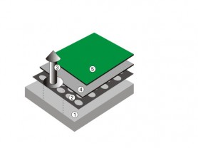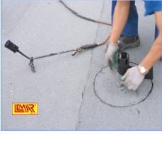 2. Stare pokrycie papowe (papa asfaltowa na tekturze lub papa zgrzewalna na asfaltach oksydowanych lub papa zgrzewalna modyfikowana SBS) nie więcej jak 5 warstw; należy oczyścić z kurzu i innych zanieczyszczeń. Pęcherze naciąć, podsuszyć palnikiem i podkleić. Fałdy papy ściąć lub naciąć i przykleić. Nierówności podłoża zniwelować poprzez przyklejenie 2-3 warstw z papy podkładowej np. LEMBIT O P-V70 S30. Zagruntować stare pokrycie papowe środkiem hydroizolacyjnym (IZOLBET lub JARLEP G lub VISBIT lub innym).Tak przygotowane podłoże należy podziurawić w celu udrożnienia i umożliwienia odprowadzenia wilgoci spod istniejących warstw papowych ( zaleca się wykonanie około 10 otworów na 1m2, np. wiertłem Ø10, aż do warstwy zawilgoconej).