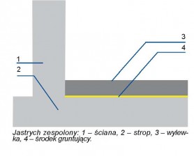 Jastrych zespolony - czyli trwale związany z podłożem, jest stosowany jako warstwa dociążająca stropów ciężkich o masie przekraczającej 300 kg/m2. Lepsza jest wówczas izolacyjność akustyczna stropu. Inne zastosowanie to warstwa wyrównująca, np. podczas remontu, układana na starym podkładzie. Podłoże należy staranie oczyścić, odkurzyć i zagruntować, najlepiej środkiem gruntującym pochodzącym od tego samego producenta co wylewka. Podłoża chłonne należy gruntować dwukrotnie, mieszając preparat z wodą w proporcjach 1:2 przy pierwszym nakładaniu oraz 1:1 przy drugim.