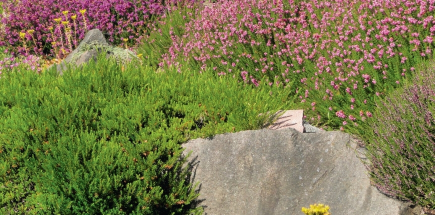 Chociaż w  zależności od odmiany mogą kwitnąć zarówno jesienią, jak i  wiosną to jednak stały się synonimem jesiennego ogrodu. Wrzosy i  wrzośce zachwycają charakterystycznymi kwiatostanami zebranymi w grona, oryginalną kolorystyką oraz niebanalnym pokrojem zimozielonych liści. Te niewielkie krzewinki – wrzosy osiągają w zależności od odmiany 20-60 cm wysokości, a wrzośce dorastają do 30-40 cm – są reprezentowane przez liczne dekoracyjne odmiany we wszelkich odcieniach różu, fioletu, czerwieni i bieli. Najbardziej przyciągają wzrok, gdy rosną w zwartych kępach – kilka sztuk na rabacie lub polanie sprawi, że utworzą bliskie naturze wrzosowisko. Sprawdzą się także jako obwódki rabat.